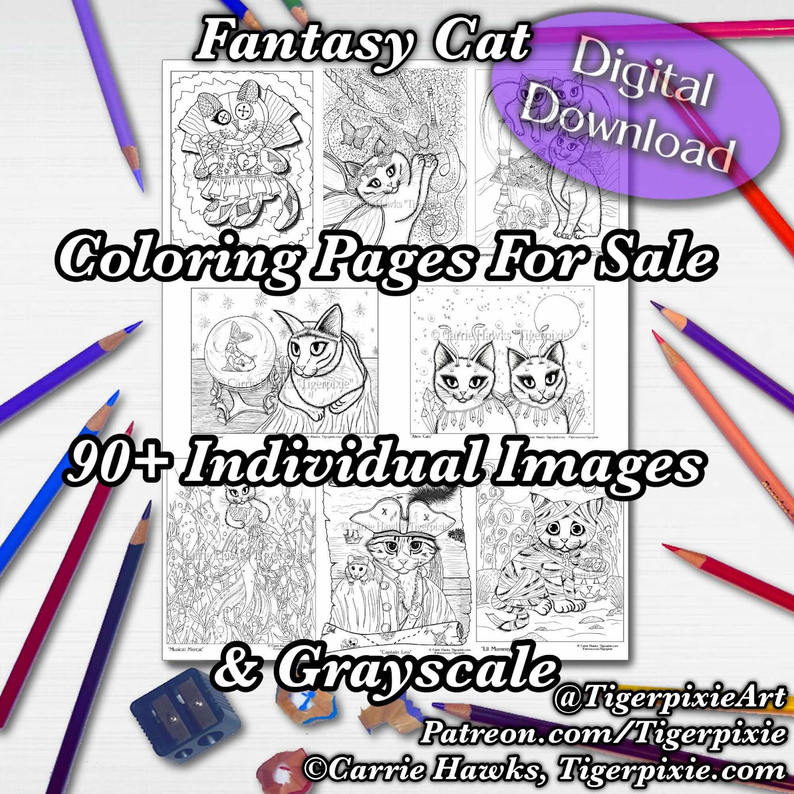 🎉My 90+ Fantasy Cat Coloring Pages are Available for Individual Purchase in my Patreon Shop! My Grayscale Coloring Pages are ONLY available through my Patreon. My Line Art Coloring Pages were all Hand Drawn with ink on Bristol paper by me the artist. Patreon.com/Tigerpixie